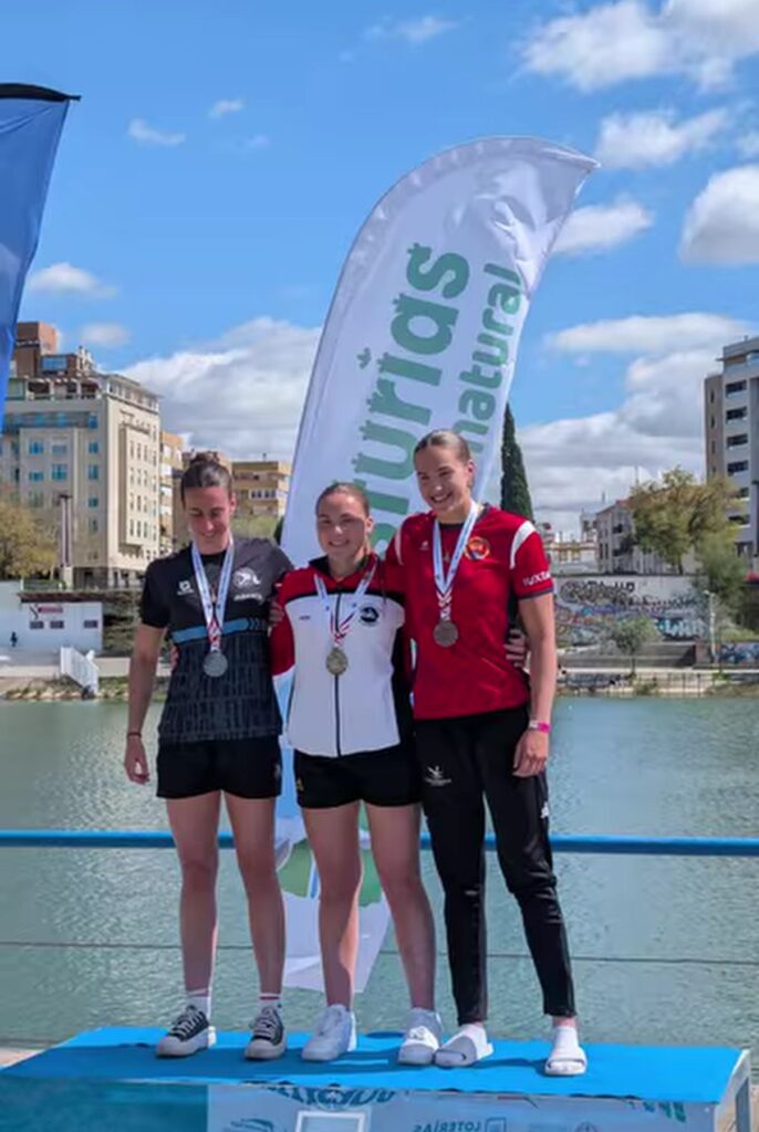 En la categoría Mujer Junior K1, vivimos uno de los momentos más emocionantes del campeonato. Telma Trinidad (CP Iuxtanam) cuajó una actuación soberbia, peleando en el grupo de cabeza hasta el final para hacerse con la medalla de plata. En esta misma final, el piragüismo extremeño estuvo magníficamente representado por sus compañeras de club y por las palistas del Piragüismo Río Jerte y la Escuela Placentina, quienes demostraron el gran futuro que tiene nuestra cantera femenina.